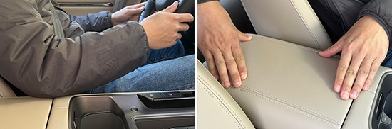 前排中央扶手采用上掀式设计,造型规整且面积宽大,表面为软性材质包裹,触感不错。在驾驶过程中,能够为驾驶者手肘提供有效支撑。