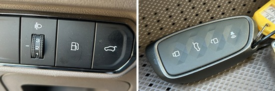 评测车配备前排无钥匙进入功能,驾驶者只需携带智能钥匙靠近车辆,将手伸进门把手内侧便可感应解锁,锁车时只需触碰门把手上的感应区即可,实测解锁和上锁过程均十分顺畅;同时,评测车还支持蓝牙钥匙和遥控钥匙。一键启动按键位于转向柱右侧,位置合理且标识清晰,日常操作十分方便。