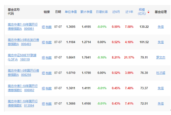 再以南方基金为例,中债7-10年国开债指数A份额规模超过130亿元,农发债指数也超过了百亿元,均比中证500和创业板ETF的联接基金规模高。