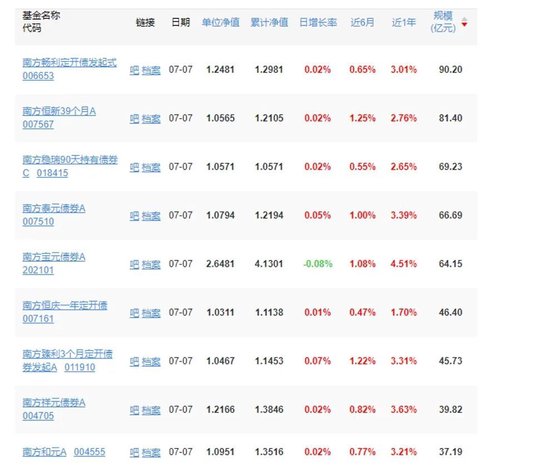 以南方基金为例,旗下债券基金规模位居前列的产品依次为:南方畅利定开债、南方恒新39个月A份额、南方稳瑞90天C份额,南方泰元债券A份额、南方宝元债券A份额,均超过60亿元规模。(以天天基金网的数据为样本,剔除了指数基金)